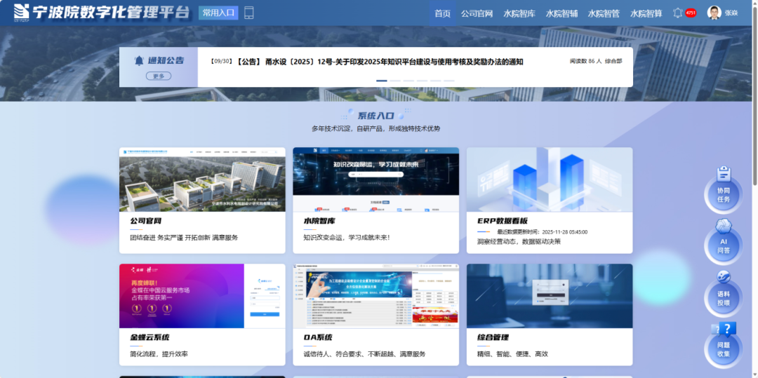 作為我院智慧水利研究院咨詢與解決方案部總監(jiān),張焱及其團隊身處業(yè)務(wù)鏈條最前端,主導(dǎo)項目售前咨詢,精準(zhǔn)對接客戶需求,是我院在智慧水利領(lǐng)域的一線開拓者。從臺風(fēng)防御技術(shù)研發(fā)到省河湖庫數(shù)字化管理,從水利工程信息化設(shè)計到數(shù)智水院產(chǎn)品推廣,他始終緊貼政策前沿與業(yè)務(wù)一線,以專業(yè)為錨、以創(chuàng)新為帆,在江河湖海的治理藍圖上書寫智慧答卷。